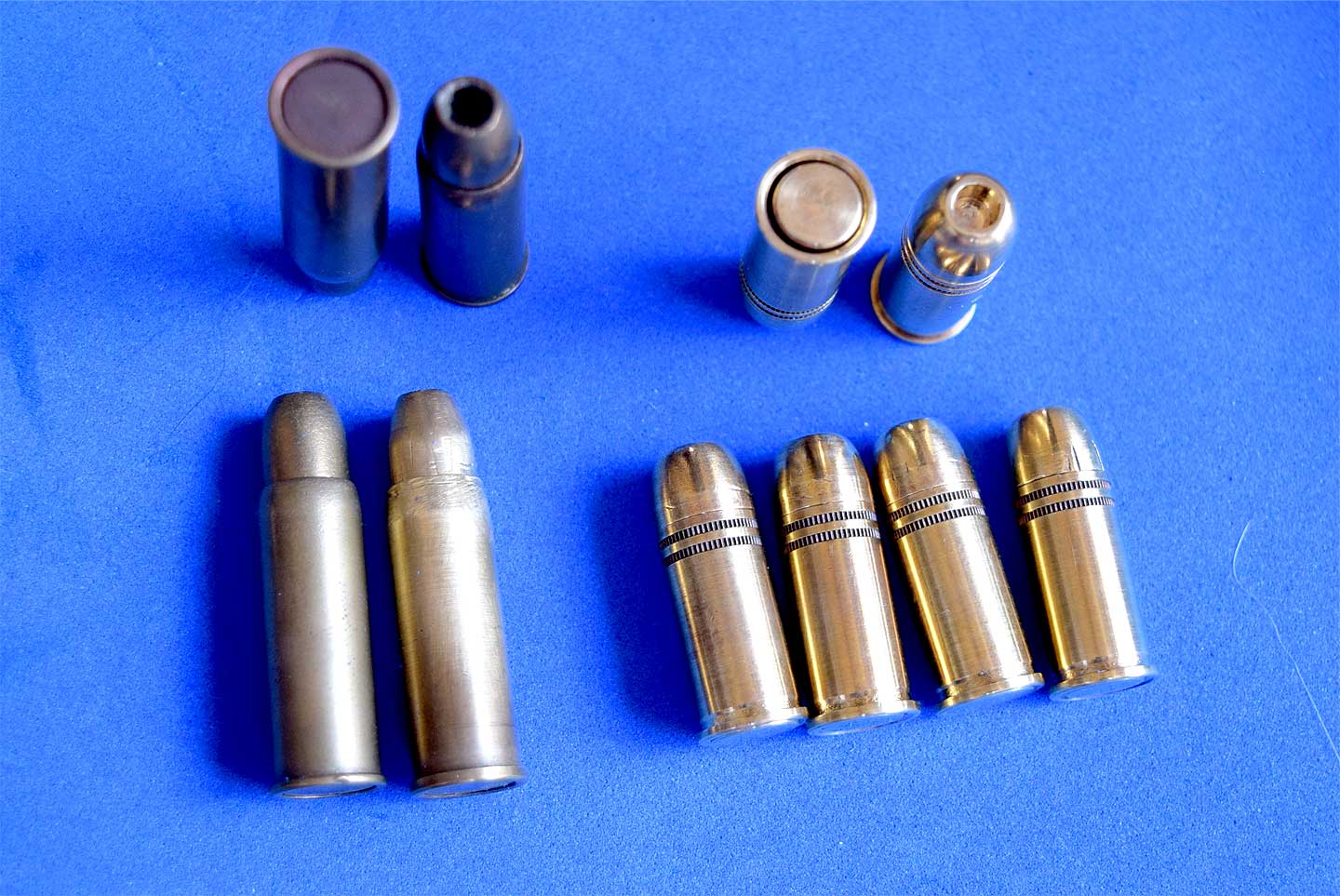 左の長いものが貫通シリンダー用で右の短いものがsm規制後の物です。規制後はシリンダーインサートが前方に施された関係で カートが短くなりました。新旧どちらも弾頭部分が前にせり出して発火するようになっています。