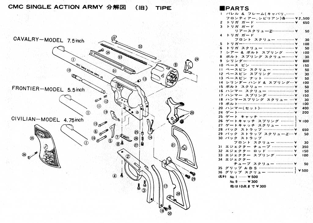 刻印の「丸に馬」は実銃では1900年から1912年ごろの物のコピーです。この2代目は、全体に この頃のコルト SAA をモデルにしている感じがします。