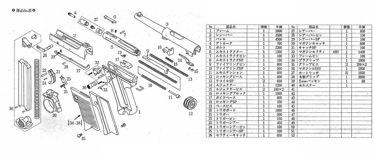 南部拳銃は、複雑なフレームなのでパーツ構成を変えないとモデルガンでの再現は 大変だったのでしょう。