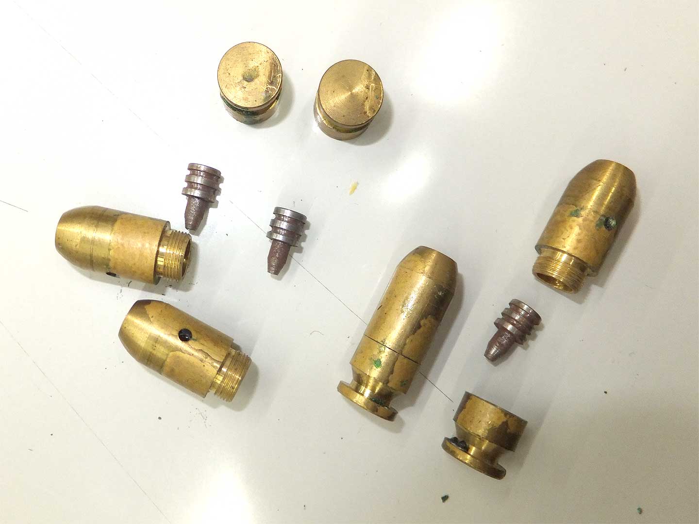 ピストン・ファイア式というのか??ブローバックカートのようです。インナーは鉄製のようで 少し錆が見られます。この程度の錆では、未発火カートと思われます。