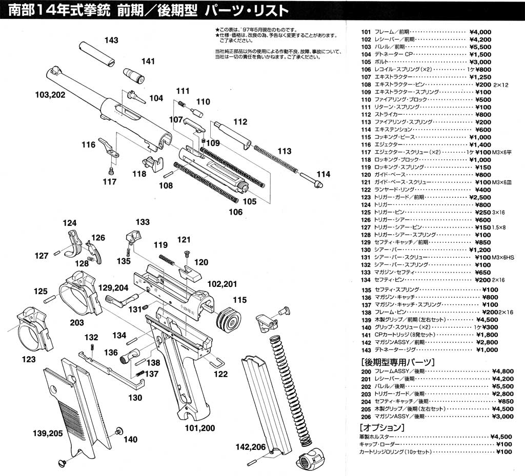 実銃の14年式拳銃は、何度もバージョンが変えられていますので、ほんとうは前期、後期と簡単には分けられません。