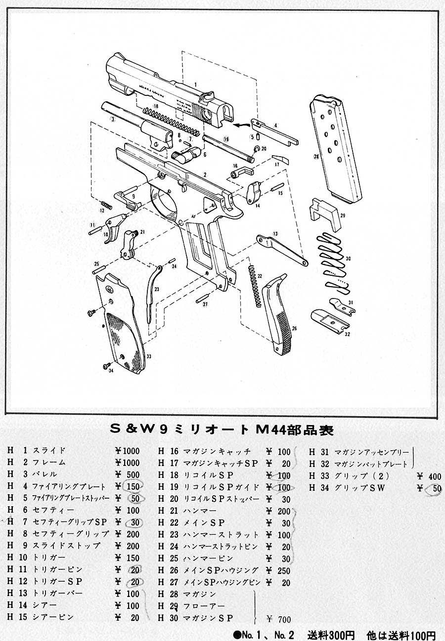 実銃のS&W 44オートは、その後の量産品であるダブルアクションのM 39 のプロトタイプのようなもので、