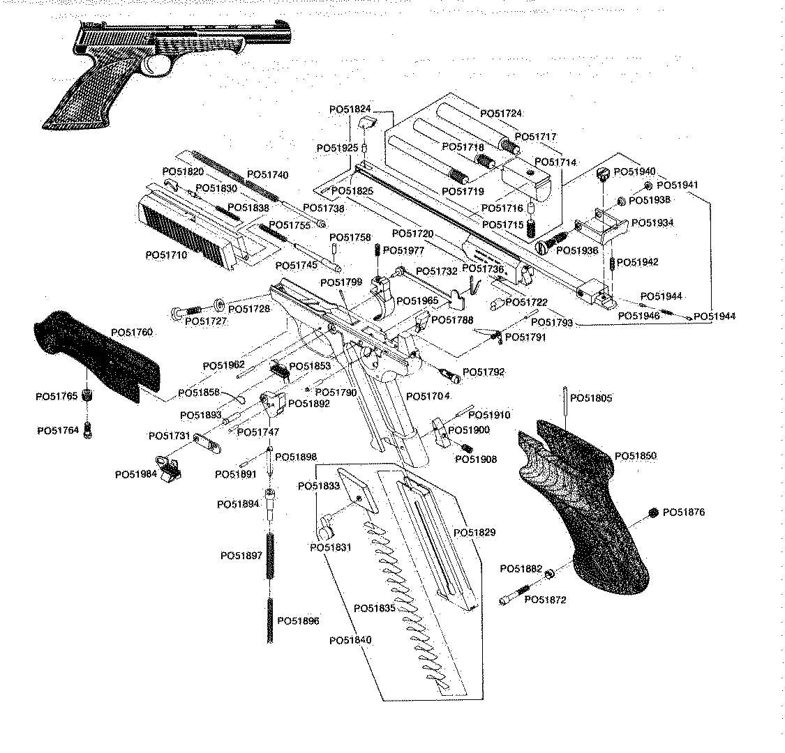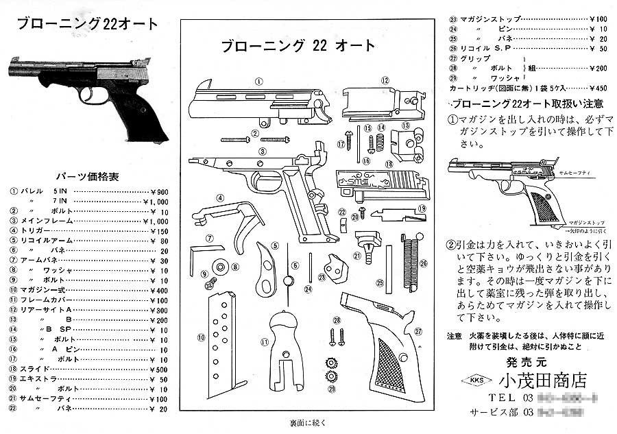 実物の分解図を見るとハンマー式でウッズマンに似ています。ウッズマンは、バレルが固定式なので