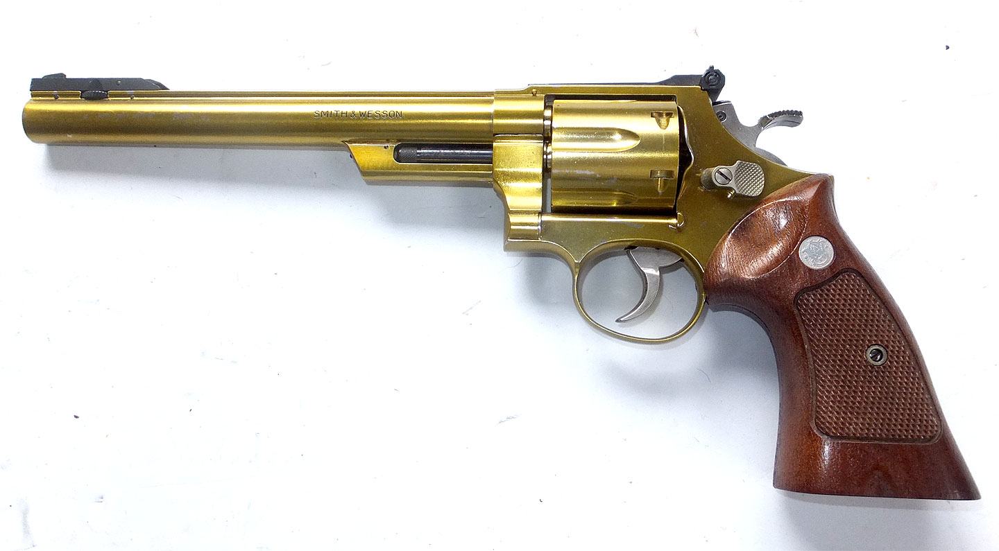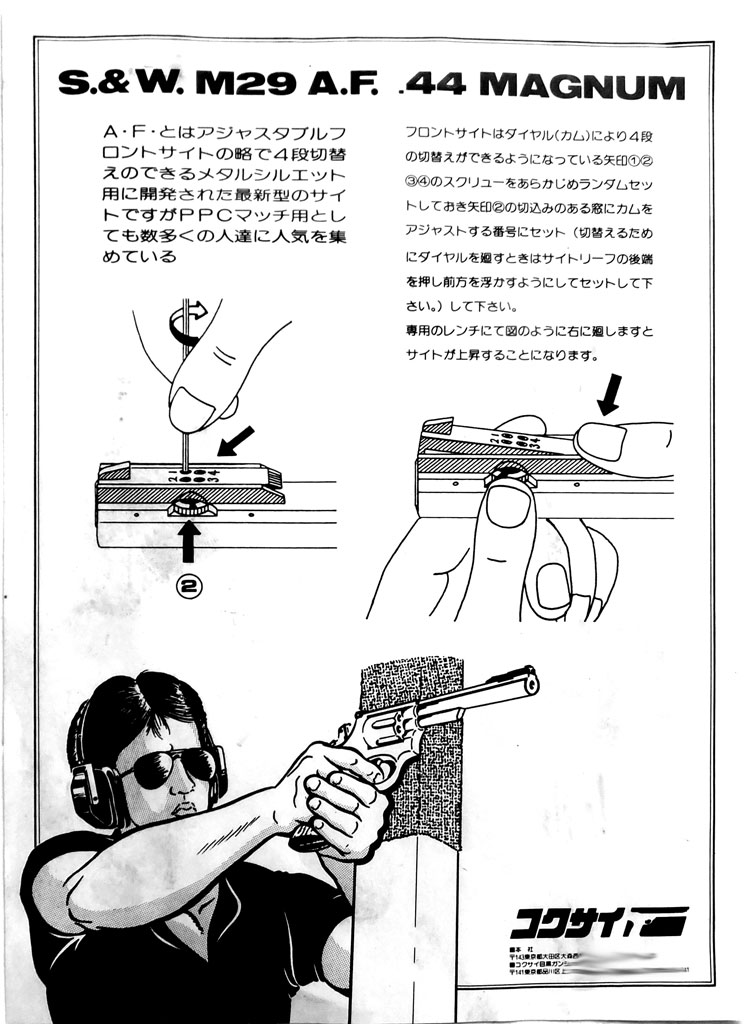 1983年7月号のGun 誌にタークさんが記事を書いています。当時の最新モデルで、テスト用にS&W から送られてきたと書かれています。10インチモデルのM29です。モデルガンは8 3/8 インチですので、それよりも長いですね。当時のメタリック射撃には、10インチ銃身が常識だったようです。