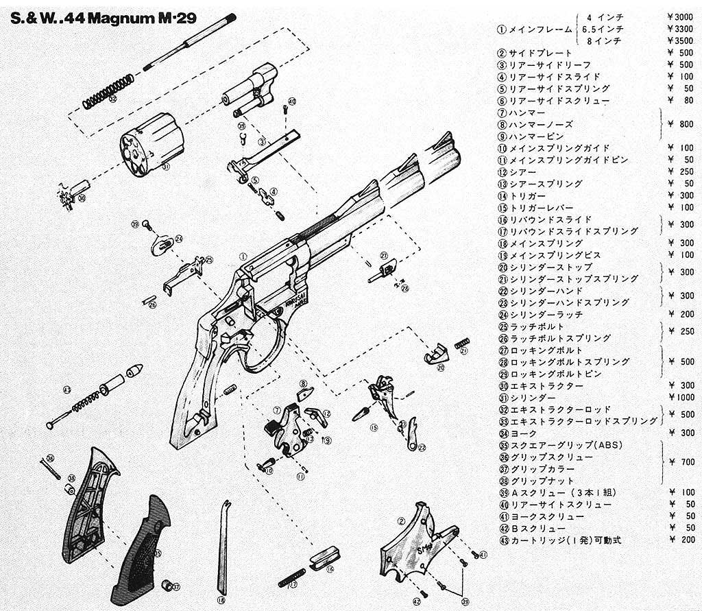 実銃の世界で、当時44マグナムを撃てる拳銃は S&W のM29 しかなかったので、44マグと言えば M29 を表していました。44マグ = ダーティハリー という式も成り立っていました。