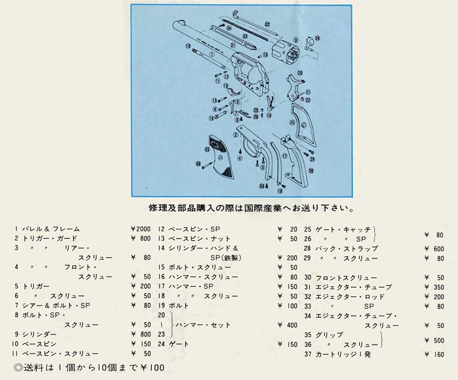 MARUさんのブログ「買い銃」 より写真いただいています。有難うございます。![]() コクサイの初期のSAA です。元祖「GUN物喪志」 のだいじそ さんより紹介していただき、写真を見ました。 SAA の分類まで自分の知識が追いついていなかったので、はじめはどこ製だか判りませんでしたが、 古いGun 誌に広告が載ってました。