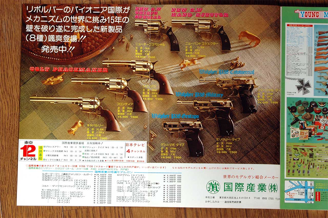 写真はクリック拡大できます。テレビCMの事が書いてあります、モデルガンバブル期の様子がわかりますね。