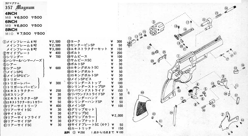 なんだか知らないけれど、みんなが作ってバンバン売れているから、同じような物を作って売ってやろう・・・ てな感じで出したのではないかと思われる357マグナムです。あまり力は入っていません。 4,6,8インチの銃身長が発売されました
