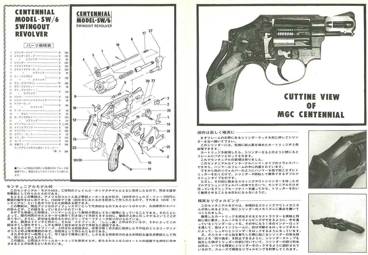 実銃では、S&W 社の創業100年を記念して1952年に発売されたチーフの ダブルアクションオンリーモデルです。1852年ボルカニック拳銃で創業してから100年後のことでした。