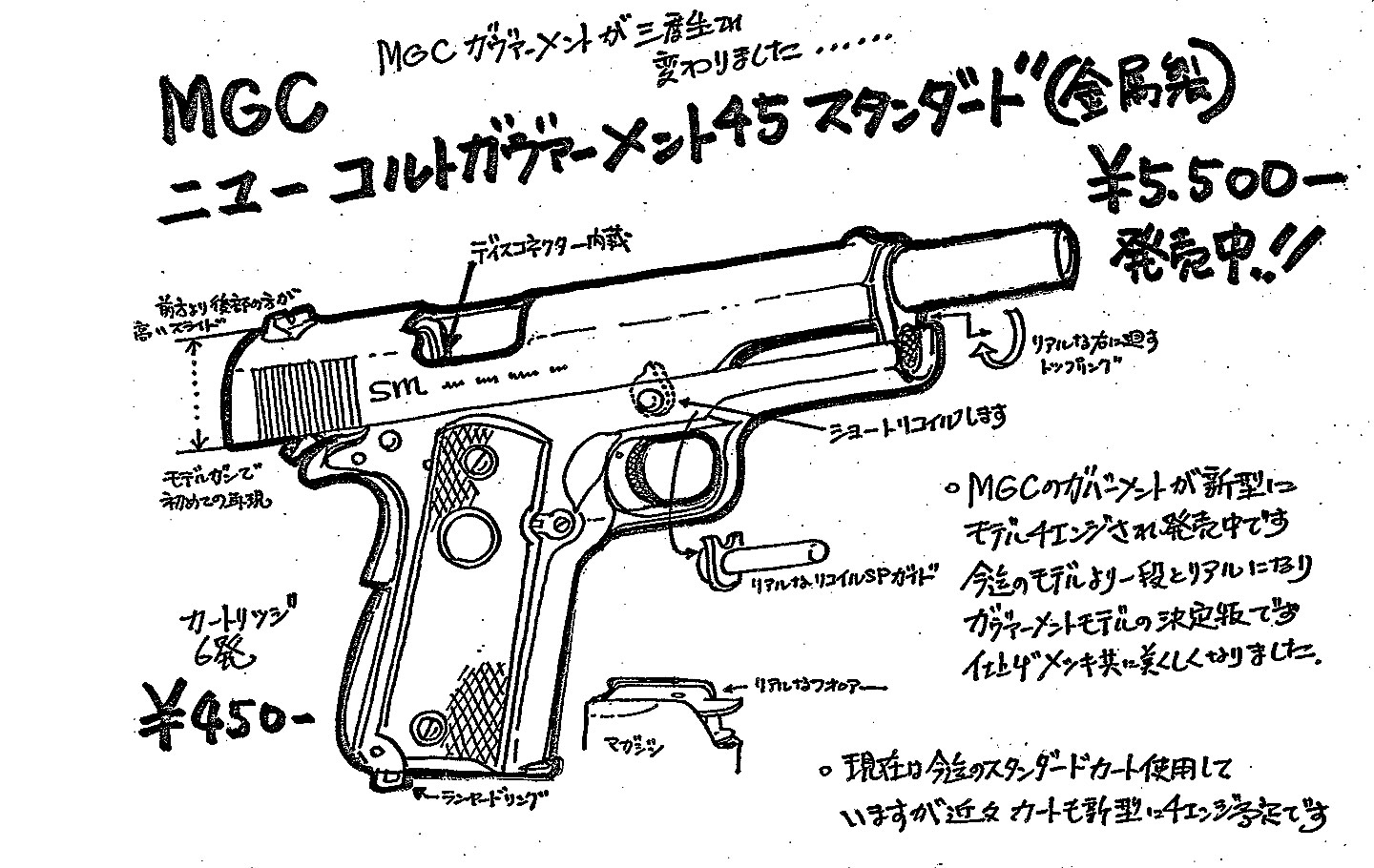 2022年追記です。 最近知ったのですが、当時MGC GM-2 のブローバックが薄青色でGM 2スタンダードは、白背景でした。 GM 3と同じデザインにプラスチック・スタンダード と書かれていました。白い背景色にスタンダード・モデルの意味合いがあったようです。