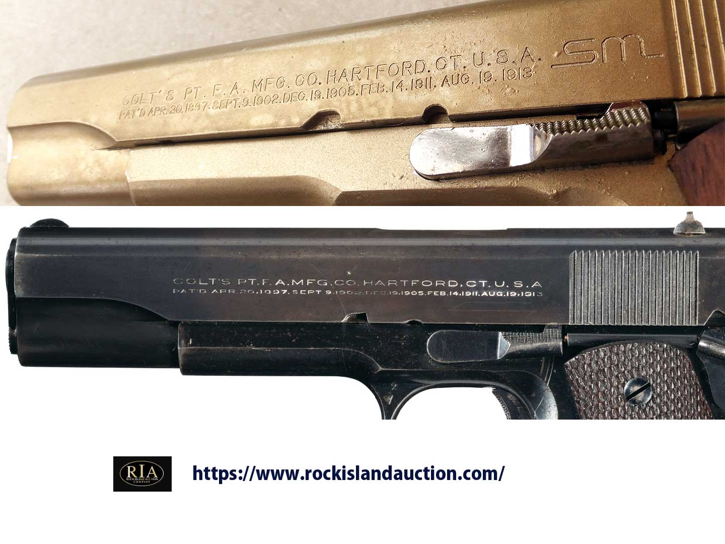 写真の2個がそうです。GM3 登場から1年くらいの時に、新たに53年規制が決まり、もうGM3 は売られなくなるという ことで規制前に投げ売りに使われたのが輸出用刻印だそうです。輸出用なのでコルトの文字はありません。