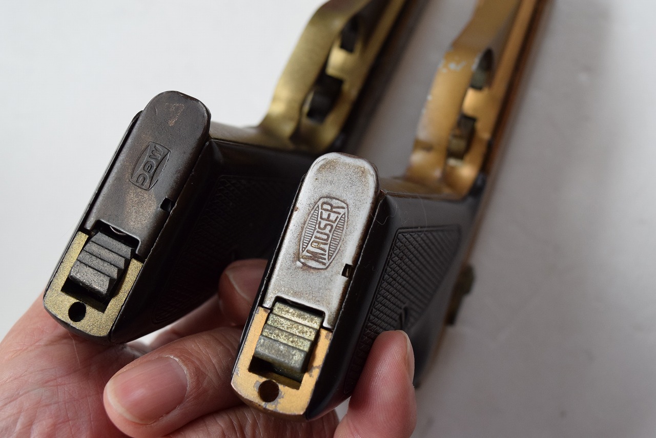 また、当初のマガジン底部の刻印はMGCでした。のちにスライドからモーゼルマークが無くなり
