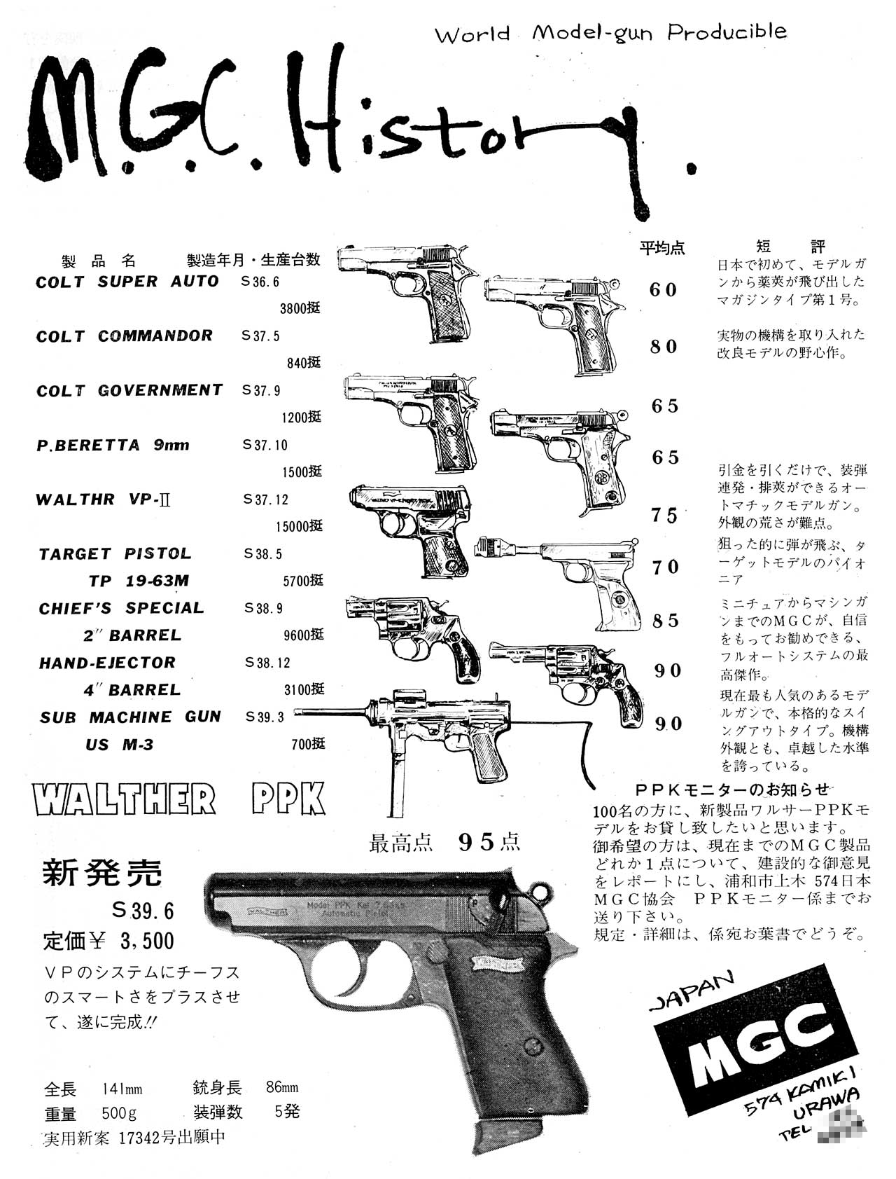 上のイラストは1964年7月のGun誌のMGC広告からですが、P−38が載っていませんね。あんまり格好が良くないので 欠番にされてしまっているのでしょうか?