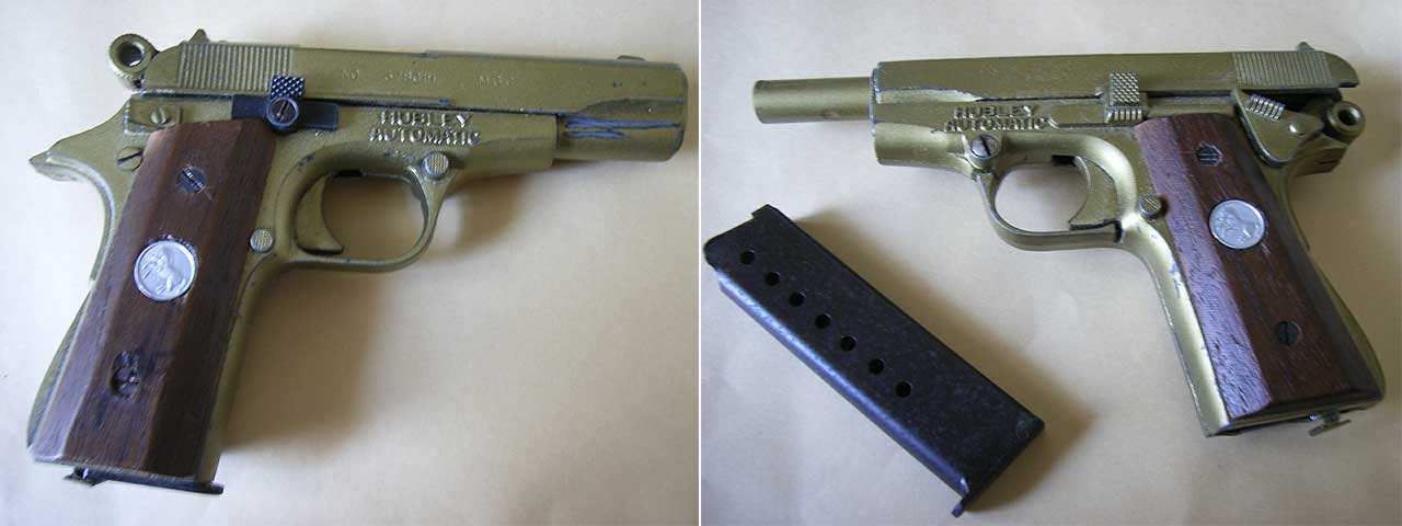 電動工具が氾濫している現在では、高校生でももっとマシなカスタムを作るぞ・・ってな感じですが、 50年前ですよ、モデルガンという物がこの世に存在していないときに出現したモデルたちです。 形がすこし変でも驚異の名品として当時の子供たち(大人?)の目に焼き付いたことでしょう。