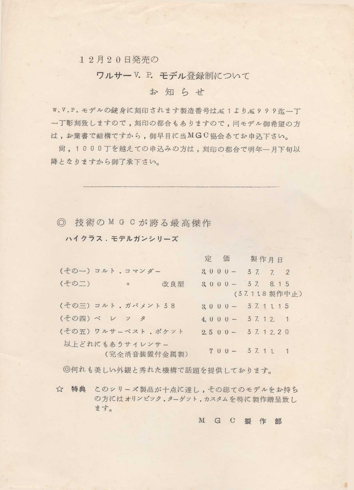 ワルサーP38のチラシです。掲載許可有難うございました。