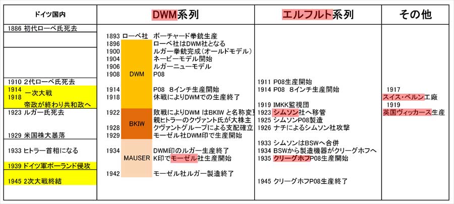 ではここで一息入れてエルフルトだのシムソンだの意味が解るように実銃のルガーの歴史をひも解いてみましょう。 長いので興味のない方は読み飛ばしてください。