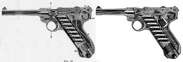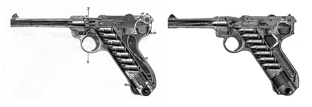 対して以前の板バネ、7.65mm口径はオールドルガーと呼ばれます。↓クリック拡大。