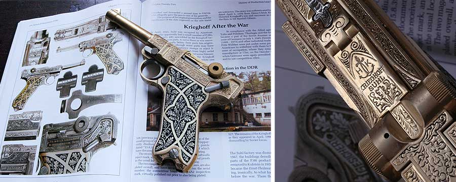 クリーグホフでは、エングレーブの入ったルガー拳銃が数丁製造されナチス幹部への贈り物にされました。 内の一つがモデルガンでも有名なゲーリングルガーです。マルシン製クリック拡大→