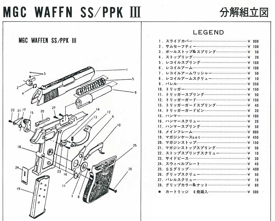 したのか不思議です。リアサイトの形状やスライド先端の切削など書籍写真との違いが見られます。