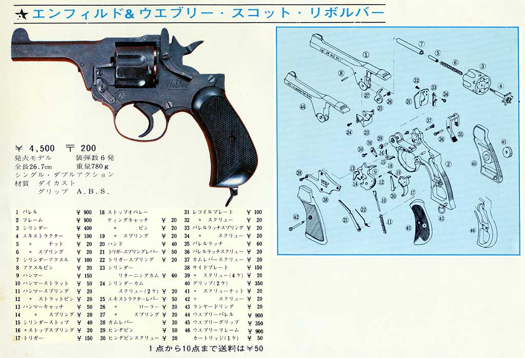 ウェブリーの方は、あとから1971年に販売になったようで、外見だけの変更品です。本物のウェブリー社の実銃に サイドプレート式は存在しません。SAA の様な一体フレームです。