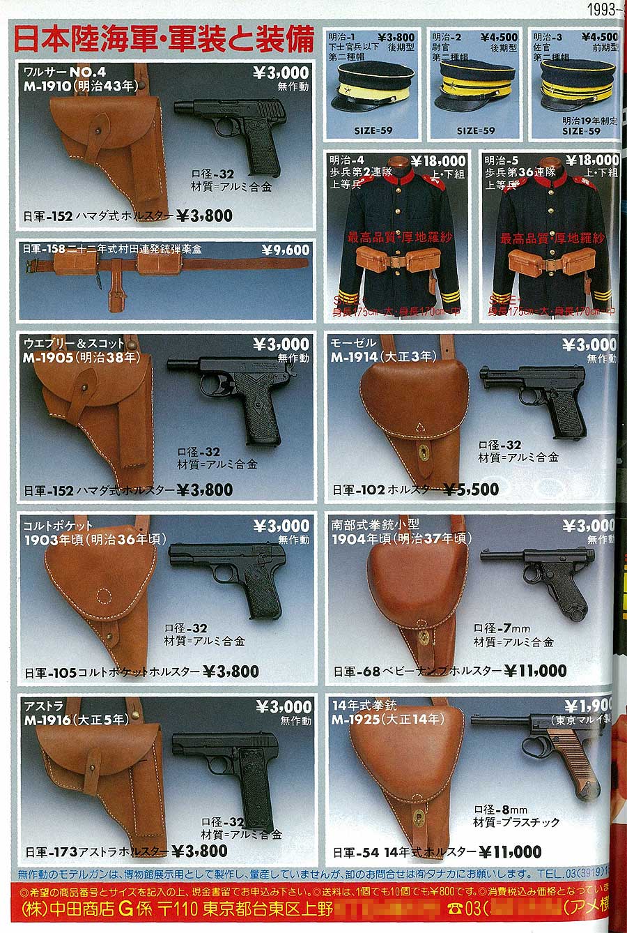 浜田式とベアード拳銃は、広告には載っていませんのでまた、別の時期に発売された物でしょうか? 他は1993年発売のシリーズなのでしょうね。この時期のことは調べが足りていません。