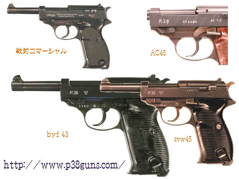 コマーシャル、ミリタリー、アンクルタイプが存在しました。コマーシャルとミリタリーは、スライド刻印が違います。アンクルはグリップが違うのみです。 アンクルって言うのは、当時流行っていた007を真似たアメリカのテレビドラマで、0011ナポレオン・ソロが 所属する機関の名前です。それにP-38 のカスタム版が登場していたのでMGC とナカタは、それぞれアタッチメントなども 発売していました。