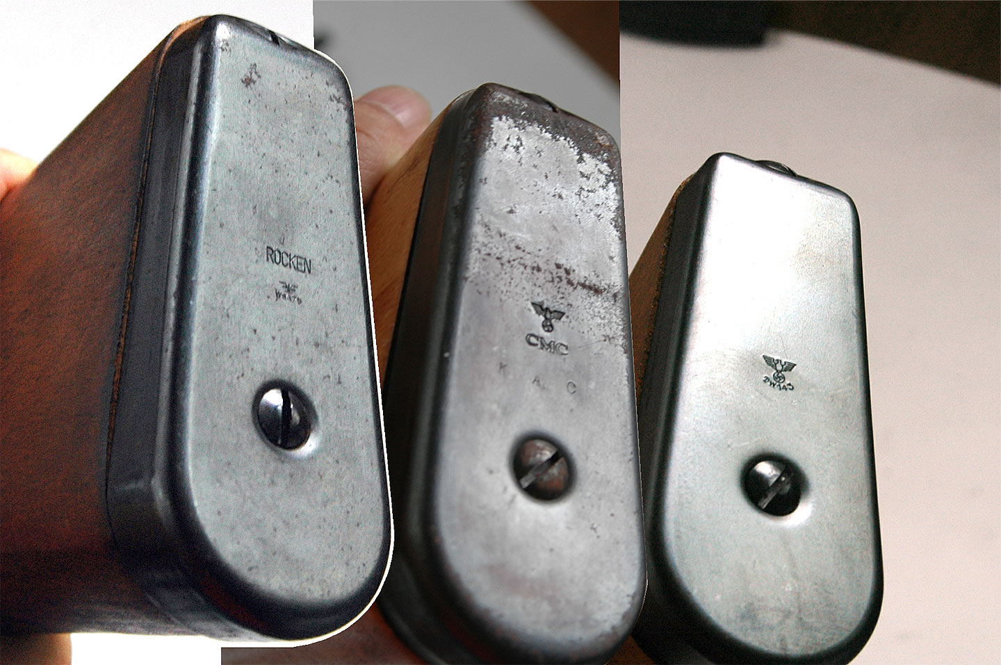 左から六研刻印、CMC、タナカワークスのバットプレート刻印です。タナカとCMC はイーグル刻印が同じ感じですね。 この他にもCMCからタナカへ販売が移ったときに使用されたと思われるCMCの上から2重線で取り消したものがあります。
