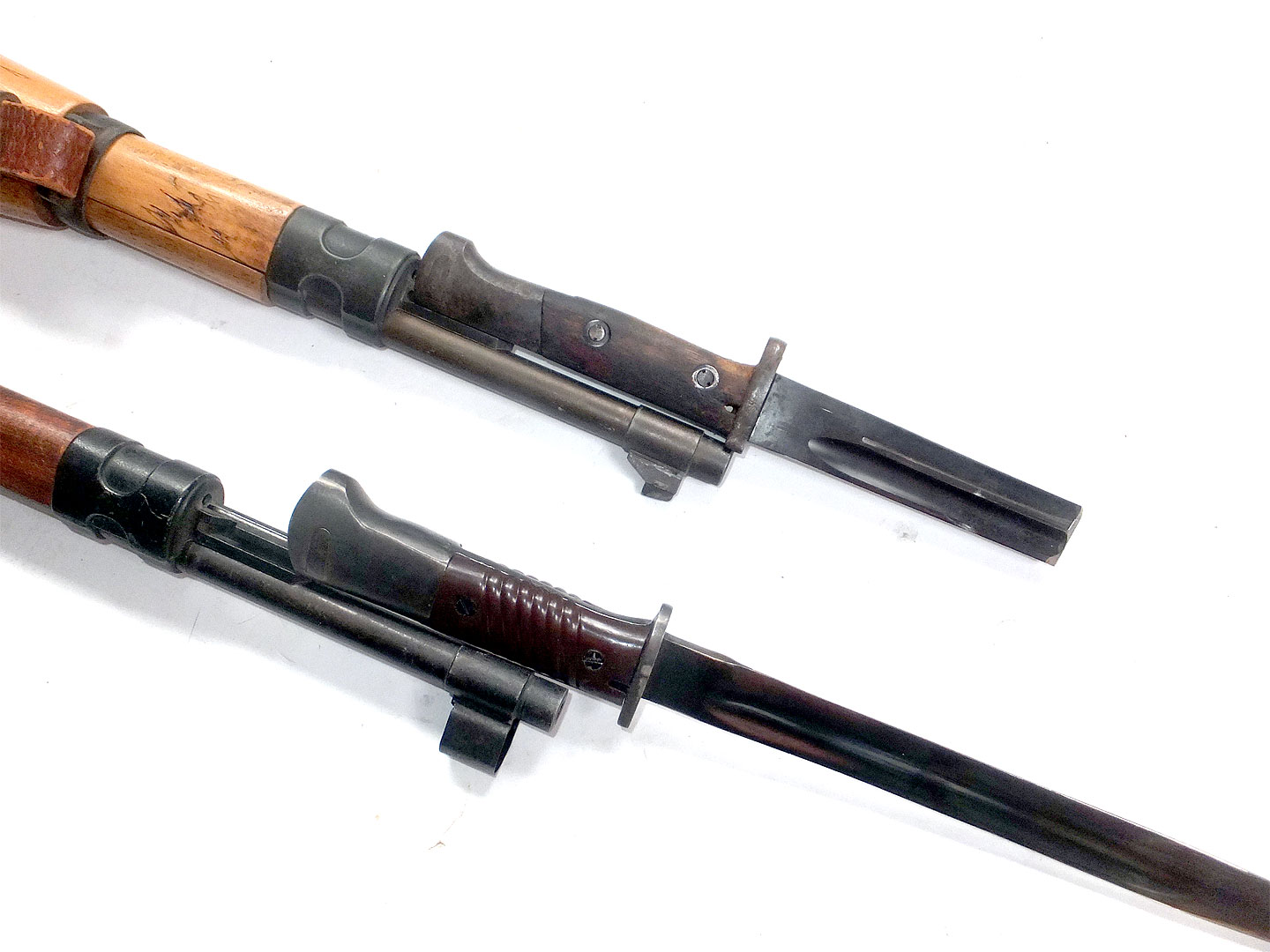ヤスリをかけてやると上のイラニアンのように装着できます。銃剣は上が実物、下がウインドラスの真鍮製。いずれも実銃と違いクリーニングロッドを外さないとバヨネットの 装着は難しいです(モデルガンのロッドは太い?)。