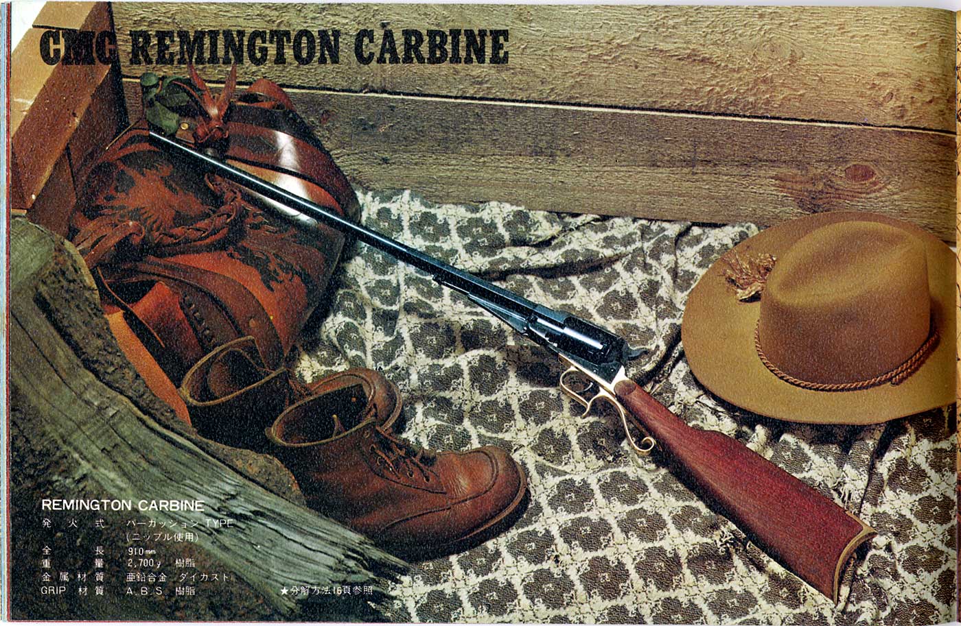 実銃のレミントンカービンは1866年から1879年に、およそ1000丁生産されたようです。ということは 南北戦争のあとですね。戦争が終わって売れなくなったピストルパーツを応用したのかもしれません。 口径は36と44、38リムファイアが製造され、44が数が少なく珍しいようです。