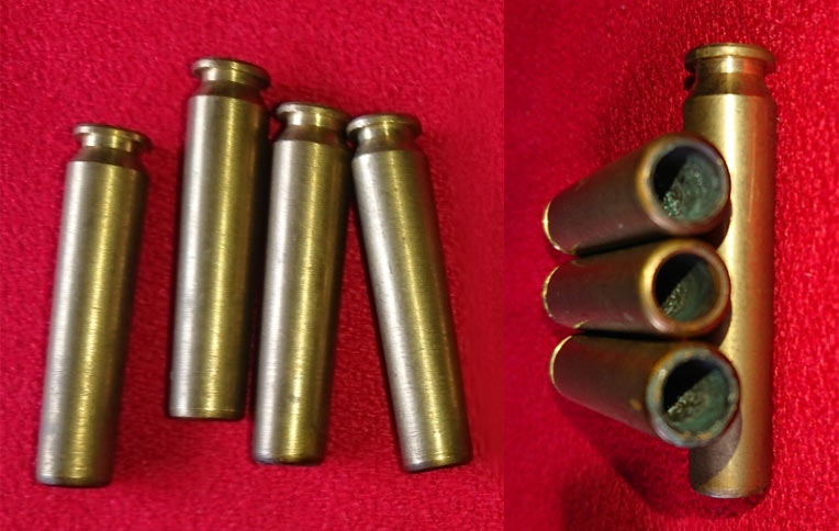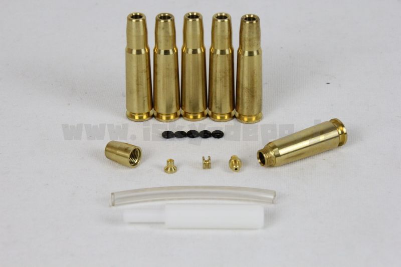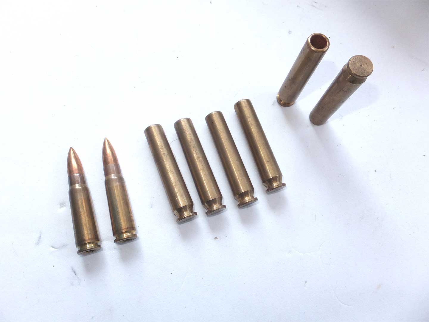 AK 47やM 16 はアサルトライフルという小口径弾薬を使う仲間ですが、そのご先祖様は2次大戦中にシュマイザーさんが開発した MP 44 と言えます。右写真のようにAK のカートは、7.92 クルツ弾によく似ています。写真のクルツ弾はショウエイのモデルガン用カートです。左写真のモデルガンは、ハドソン、デニックス、マルシンです。