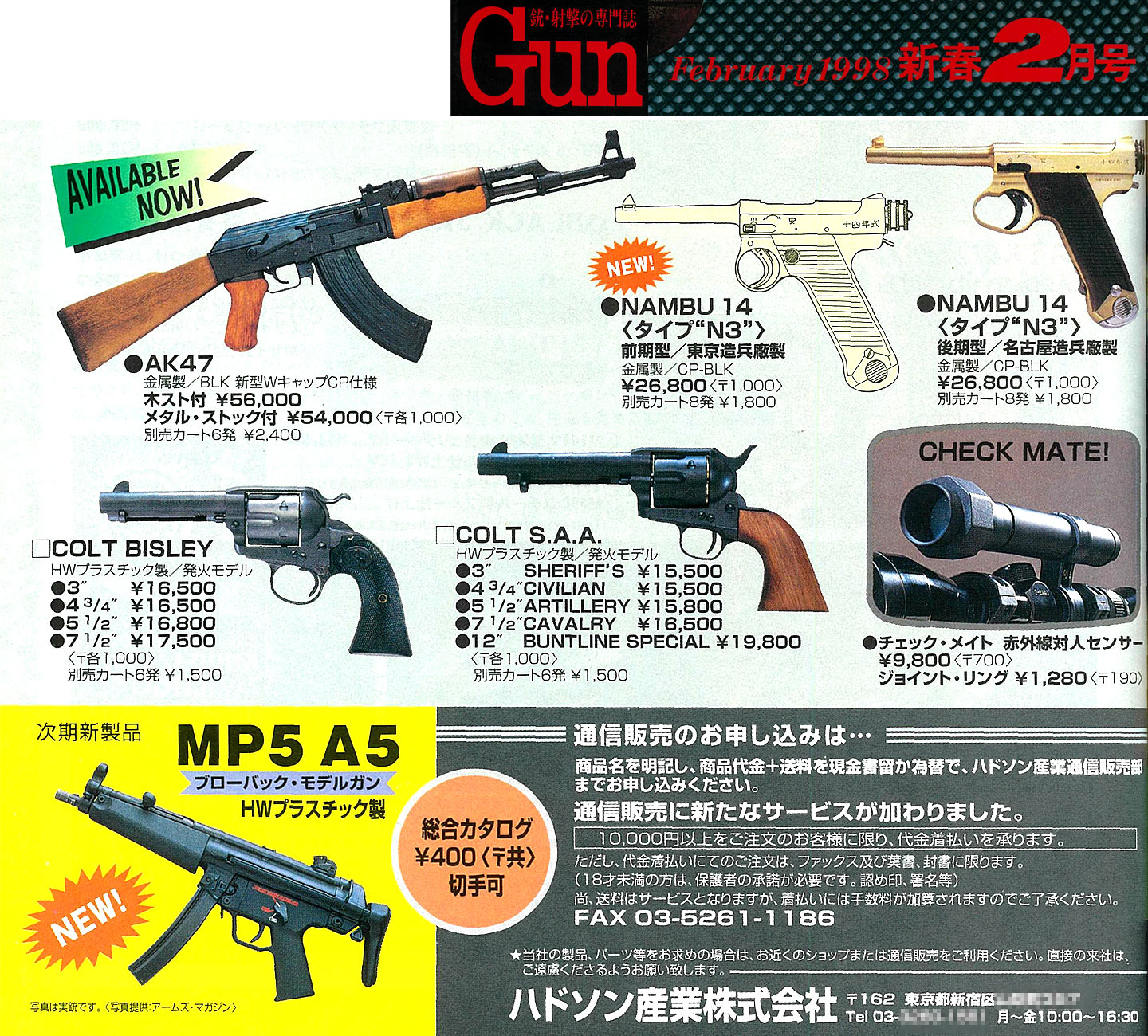 最終のSE型では、ダブルキャップ式になっています。と、思っていましたら98年の広告にダブルキャップのことが書いていましたので SE型 登場よりも前にカート形式は、変わっていたようです。 Gun 誌 1998年2月号ハドソン広告