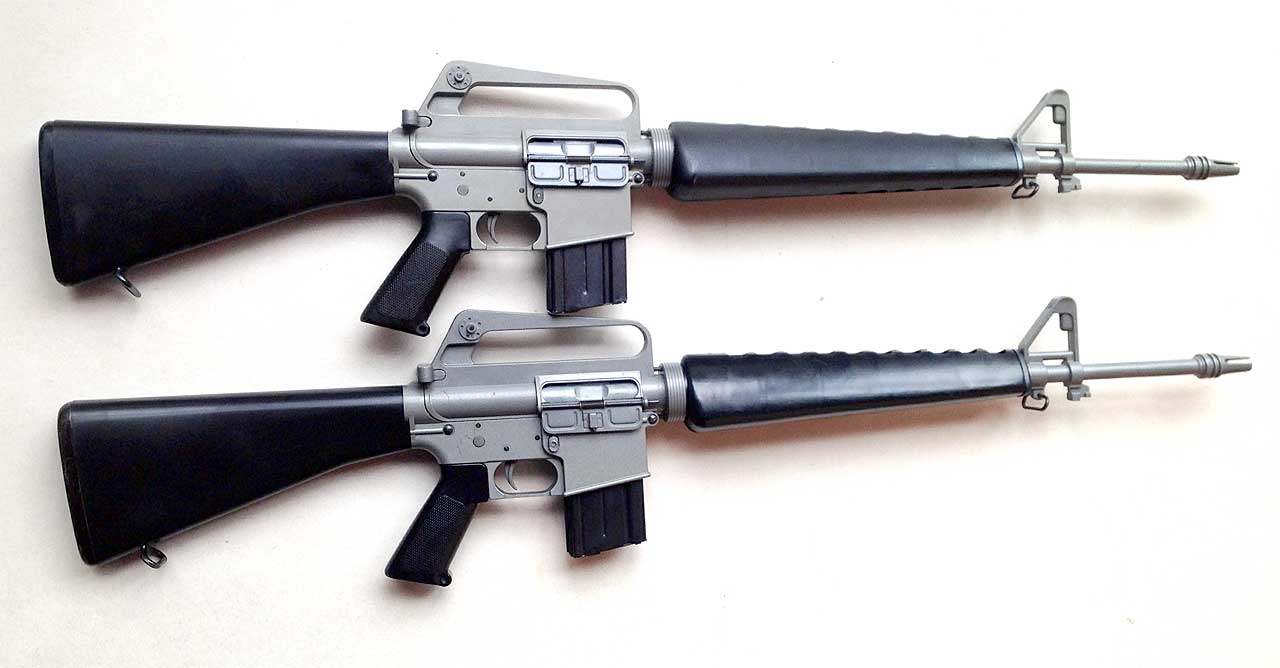 と、いいますかM16 の最初期のモデル601 はサイトに矢印がありませんでした。コクサイのモデルガンは、モデル604 空軍向けM16が近いのではないかと思います。 下記参考ページに詳しいです。