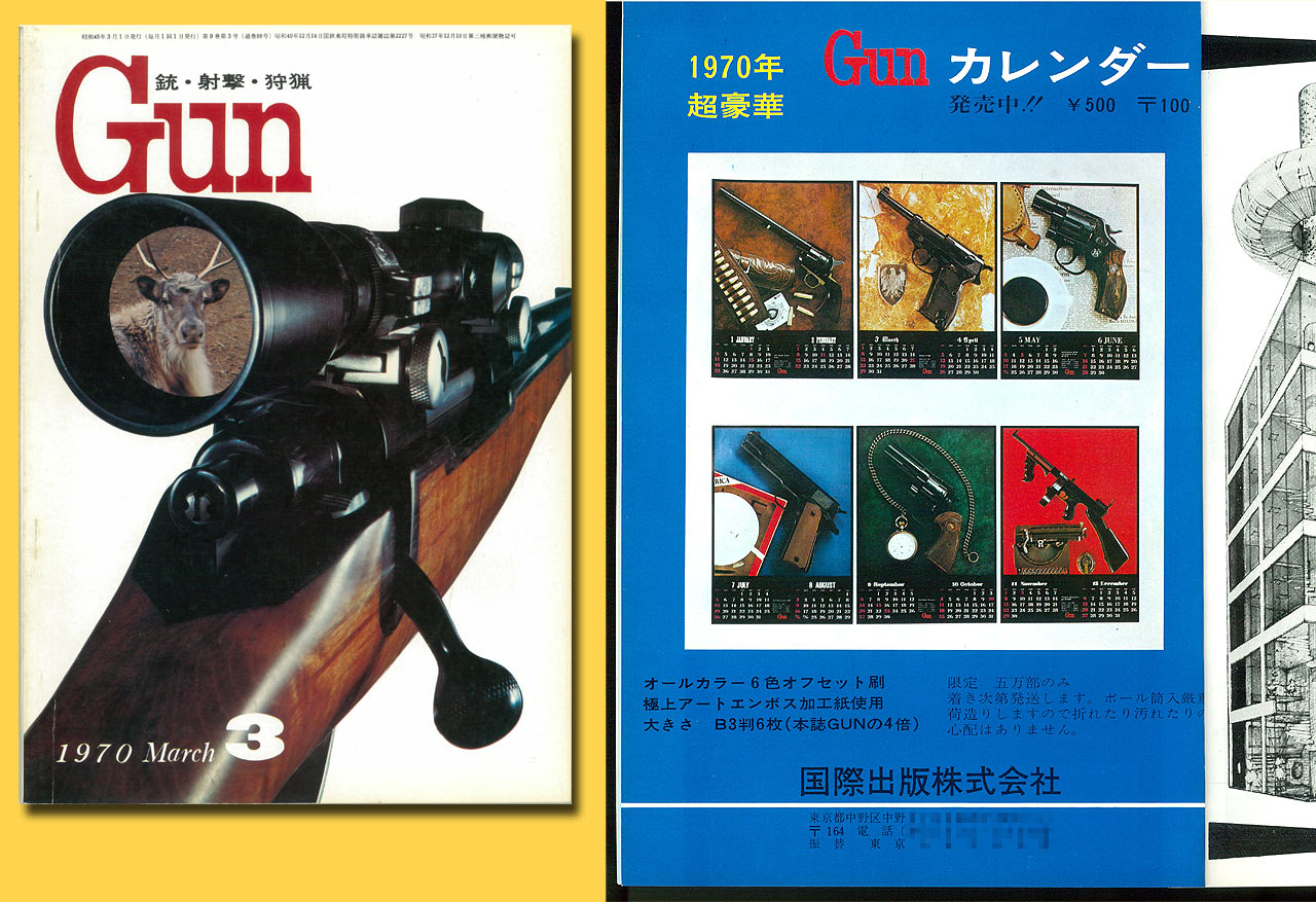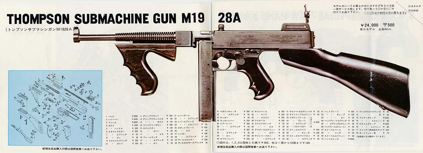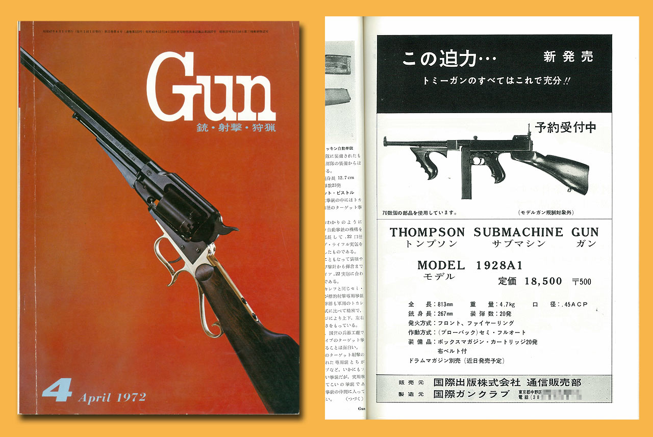 1972年4月号の広告に初登場です。この年は、前年の1971年(昭和46年)にハンドガンの銃口閉鎖、金色塗り規制が発効されたため ハンドガン需要が無くなると思ったモデルガン各社が、長物に「生き残る道」を見出そうと新商品を開発していた頃でした。