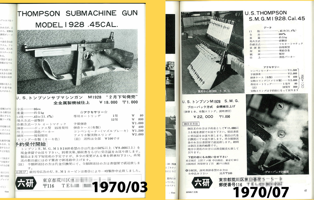 六研は、鉄製トンプソンの数年あとに亜鉛製のトンプソンを発売しています。数は多くなかったようですが、その後六研の金型を使って 国際製のトンプソンが出来上がったようです(ネットの情報です)。