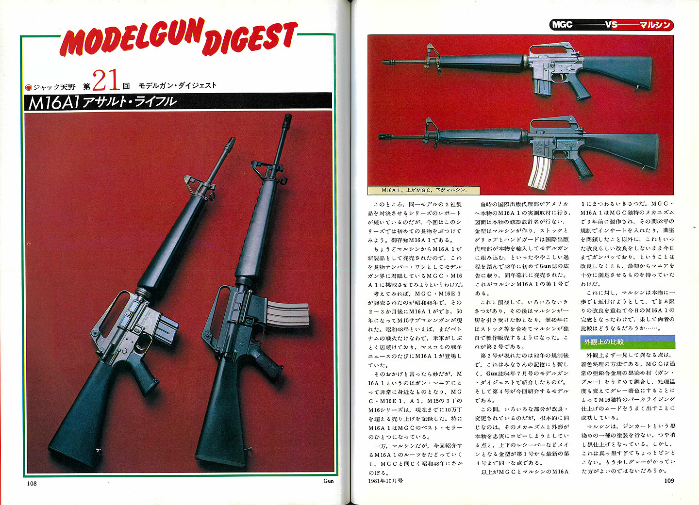 1981年10月号のGun 誌広告です。また、この号にはジャック天野さん=根本 忠 さんによるMGC との比較記事も掲載されています。