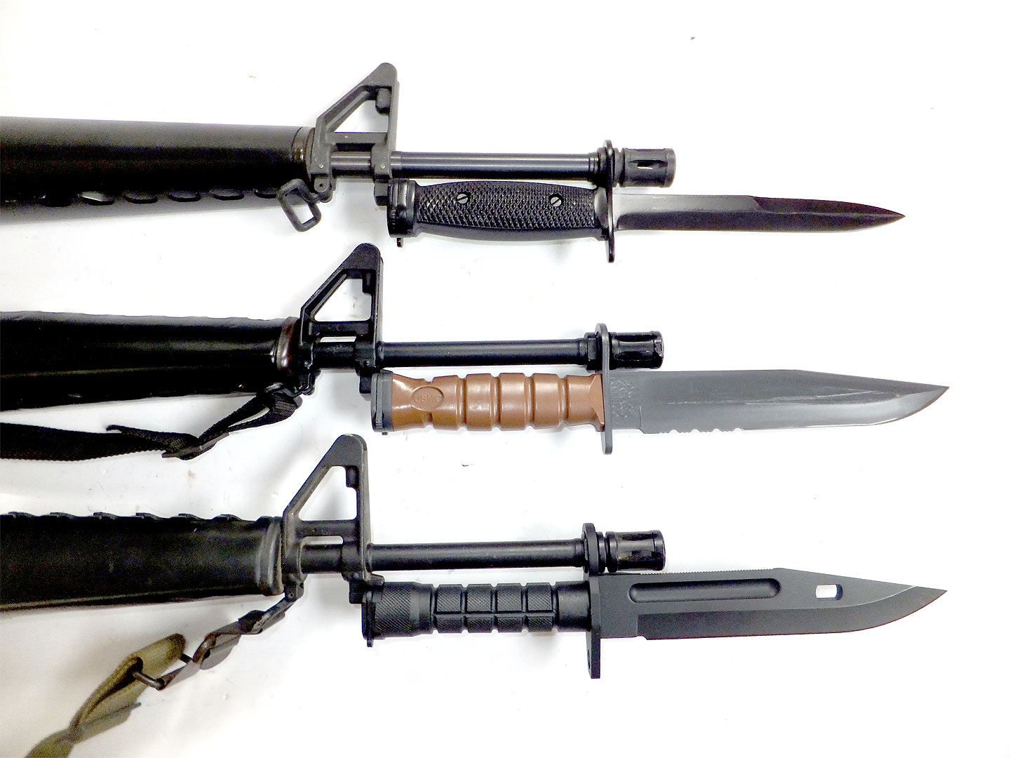 上からアリイのプラモデル、ウインドラスM7、プロビスM9銃剣。