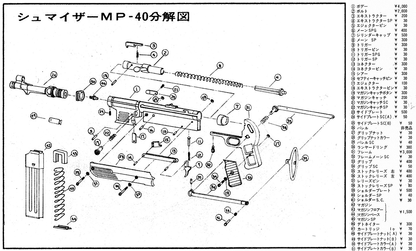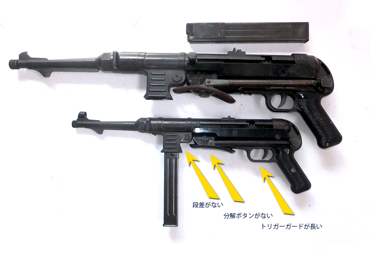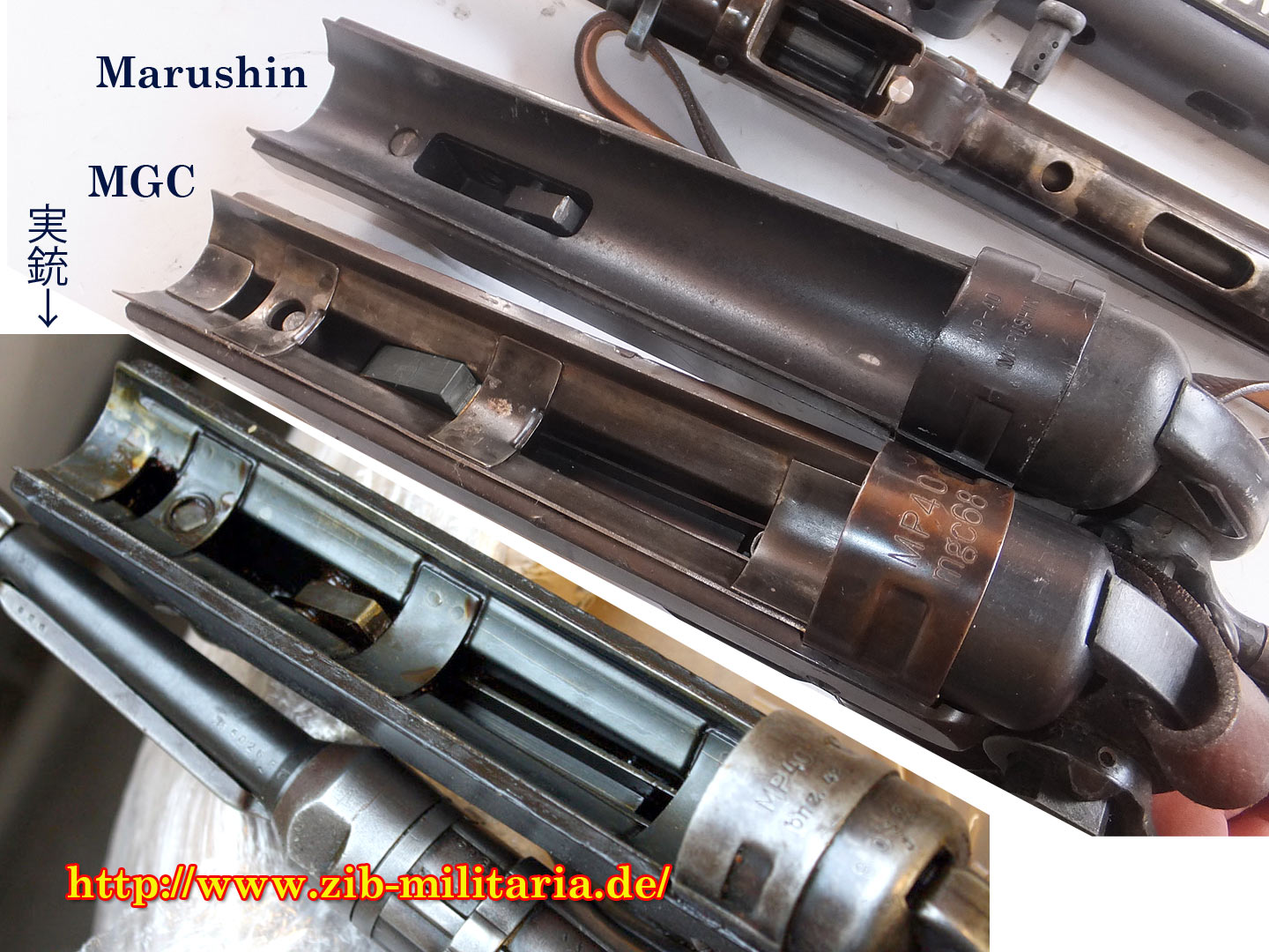 これは、smG 規制が発行されてチャンバーの前方に超鋼インサートを鋳込まなければいけなくなったからです。 規制で鉄製のMGCは消えましたので、プラスチック製のMP40が出現するまで、日本にはこの 長鼻のMP40しか存在していませんでした。