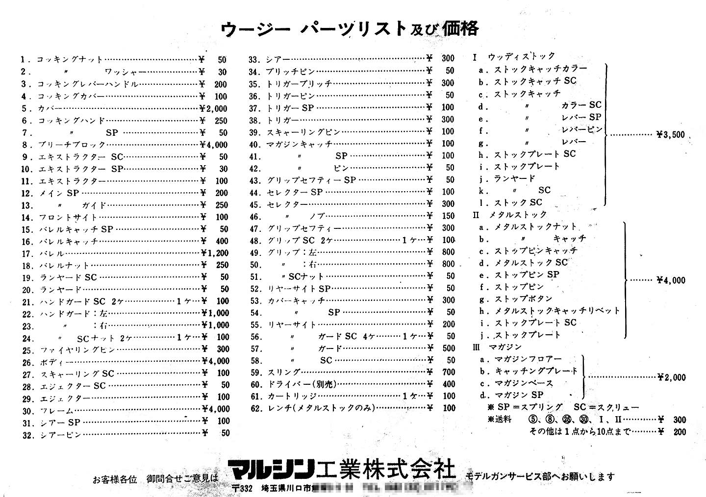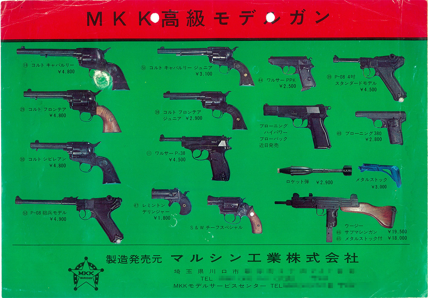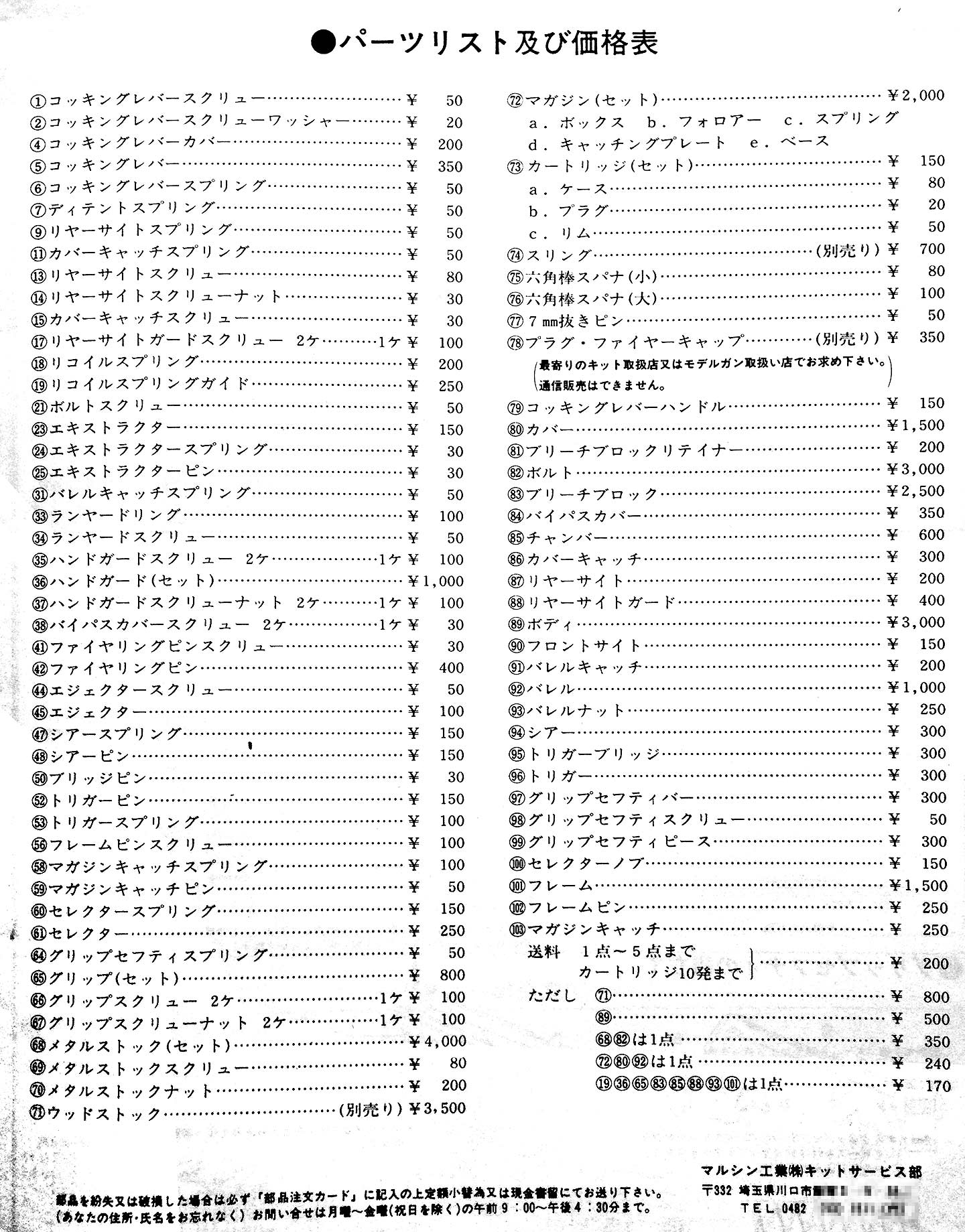 マルシンの古いカタログです。左写真は量産品と違って実物同様のリアサイト形状です。
