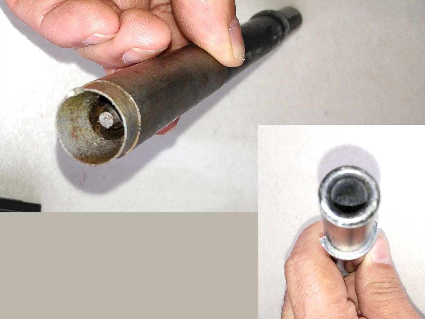 バレルは、赤い範囲のチャンバーから色の変わっているところまでが鉄です。亜鉛と鉄は一体で鋳造されています。 また、バレルは閉鎖されています。