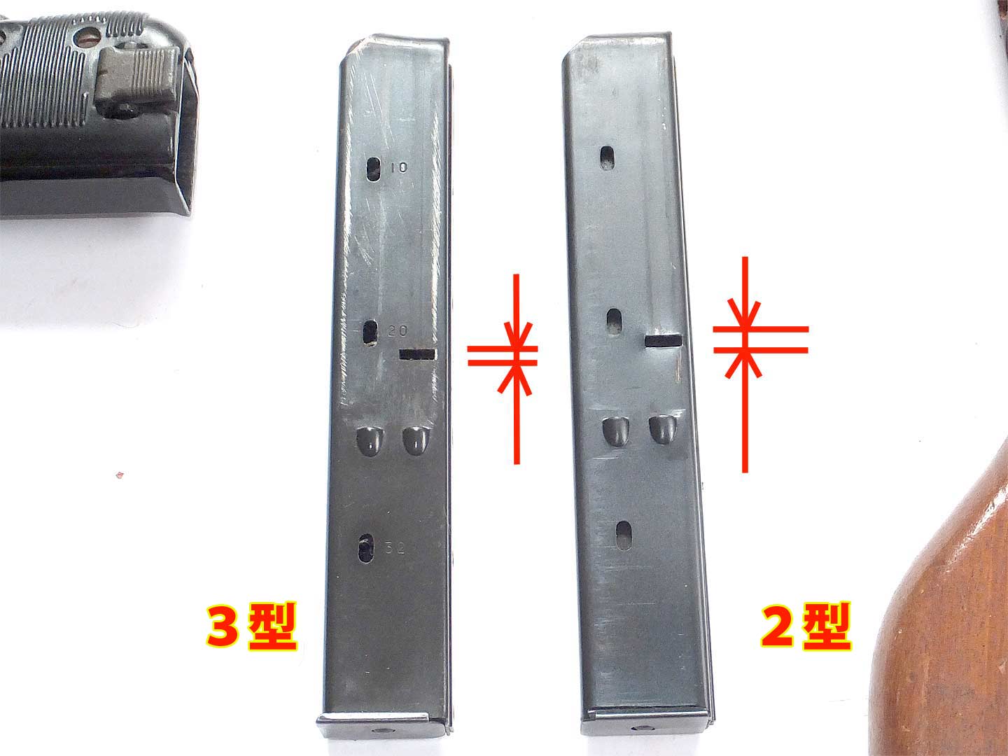 3型では、リアサイト形状の外観がネジが無くなって実銃っぽくなったこと、マガジンがダブルカアラムになったこと、また材質ではボディが亜鉛からアルミに代わって、軽量化されたことなどが それまでと大きな違いになります。またボルトも当初は鋳鉄製でしたが、そのうち亜鉛製になり、後期には 一体式ではなく打撃部分がパーツ分けされています。