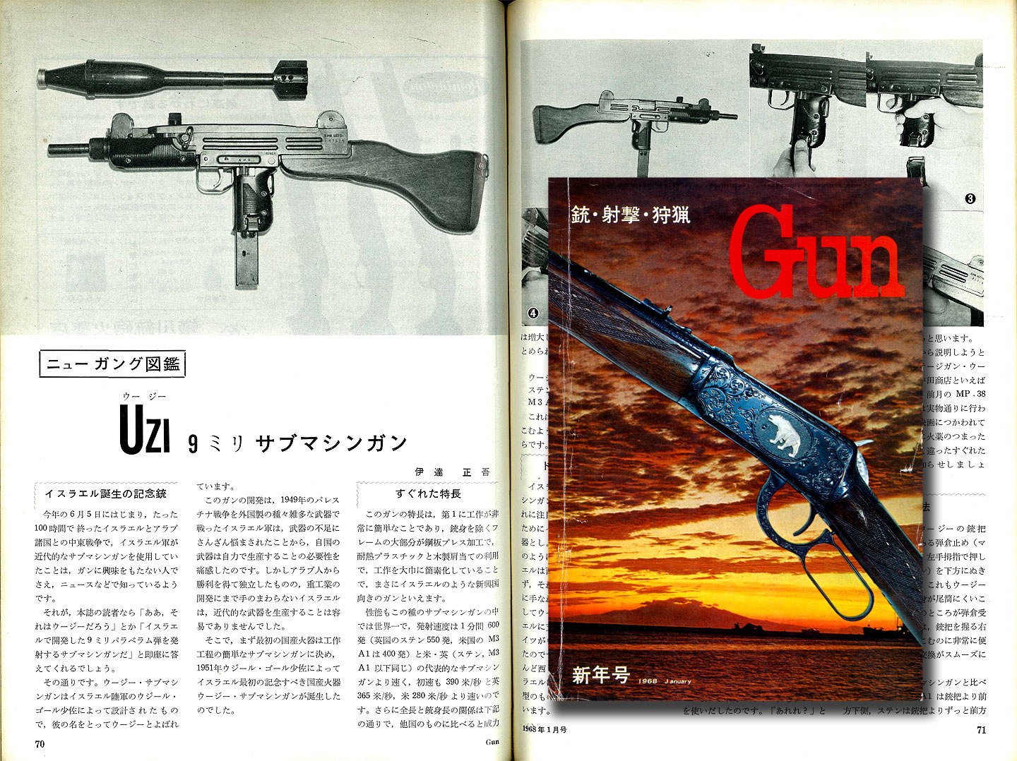 1968年(昭和43年)1月号に中田商店のステージガンということでウージーの原型と思われるものが登場しています。