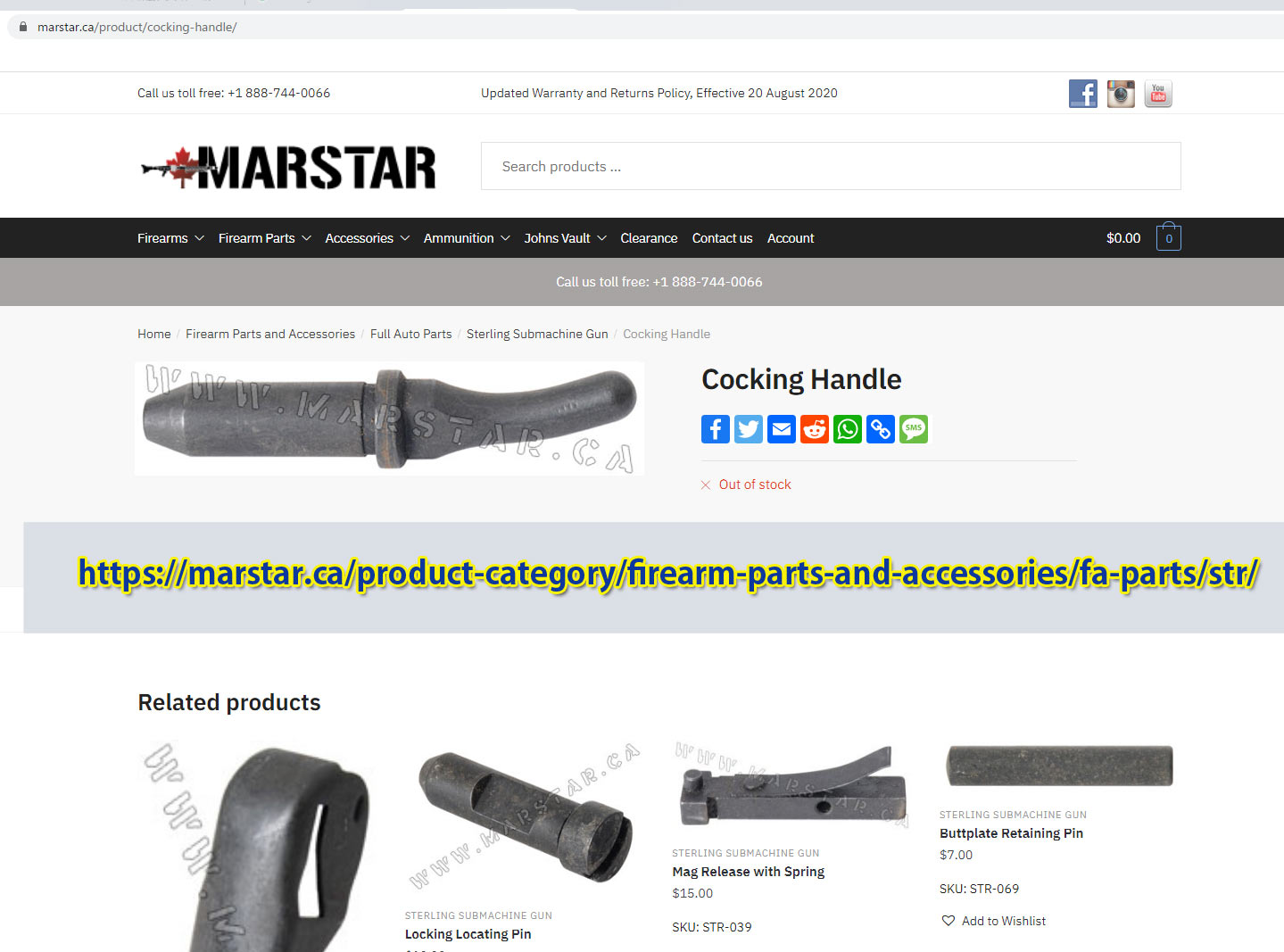 カナダのガンパーツのページから取ってきた写真ですが、本物のコッキングハンドルは曲がっています。