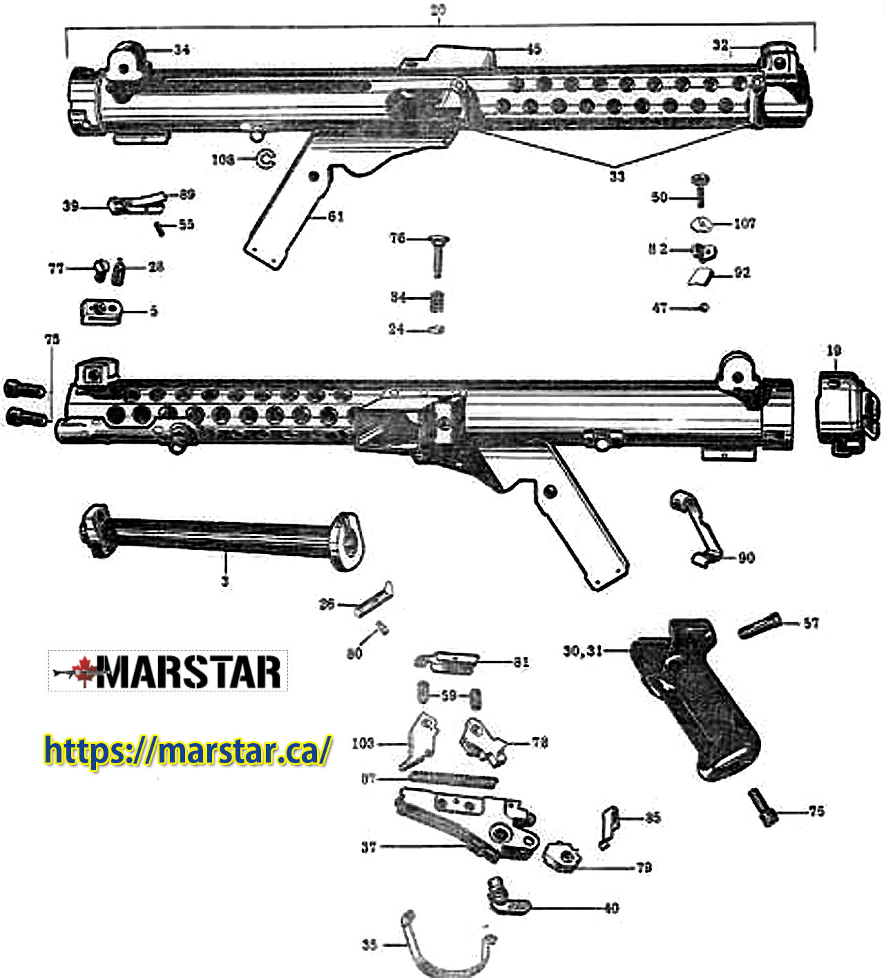 カナダ製から銃剣装着プレートを外してスリングスイベルを取り付けたものがMGC 製です。