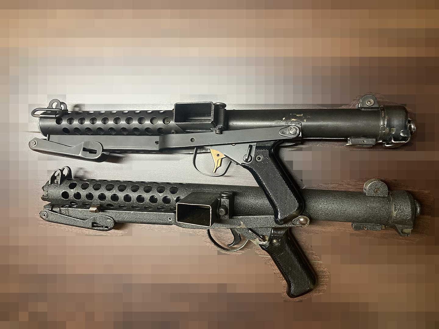 ↑写真の下が耐熱塗装の施されたスターリング無可動実銃です。