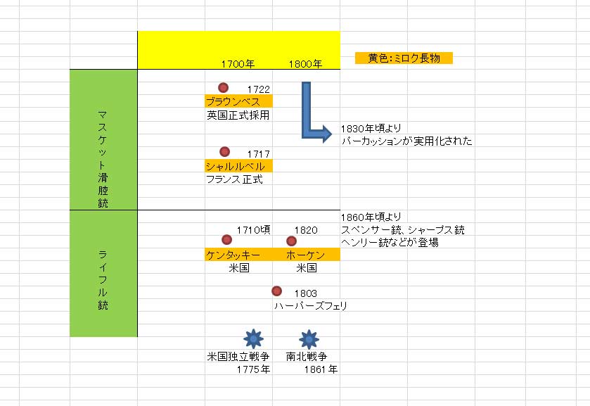 滑腔銃とライフリング有りの銃がほぼ同じ年代で並行して存在していたのですね。