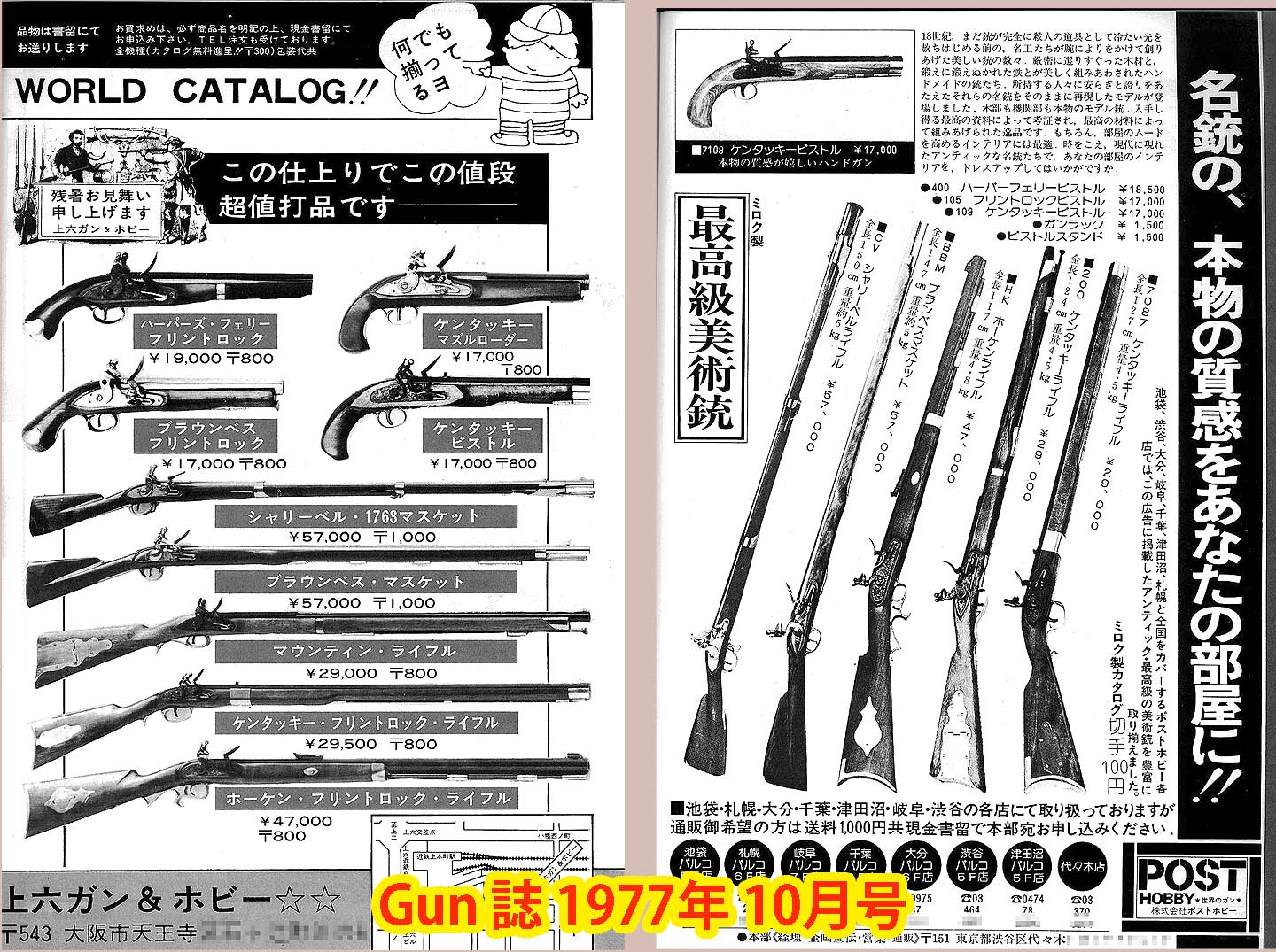 こちらは翌年のGun 誌の広告ですが、上六ホビーさんではマウンテンライフルなのですが、右のポストホビーさんでは