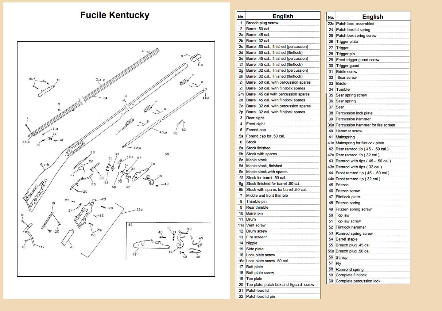 なかなか段付きバレルの実物写真が無いので、しかたなく外観が似ているペデルソリのケンタッキーの 写真と分解図を載せてきます。下記ページから分解図はPDF でダウンロードできます。