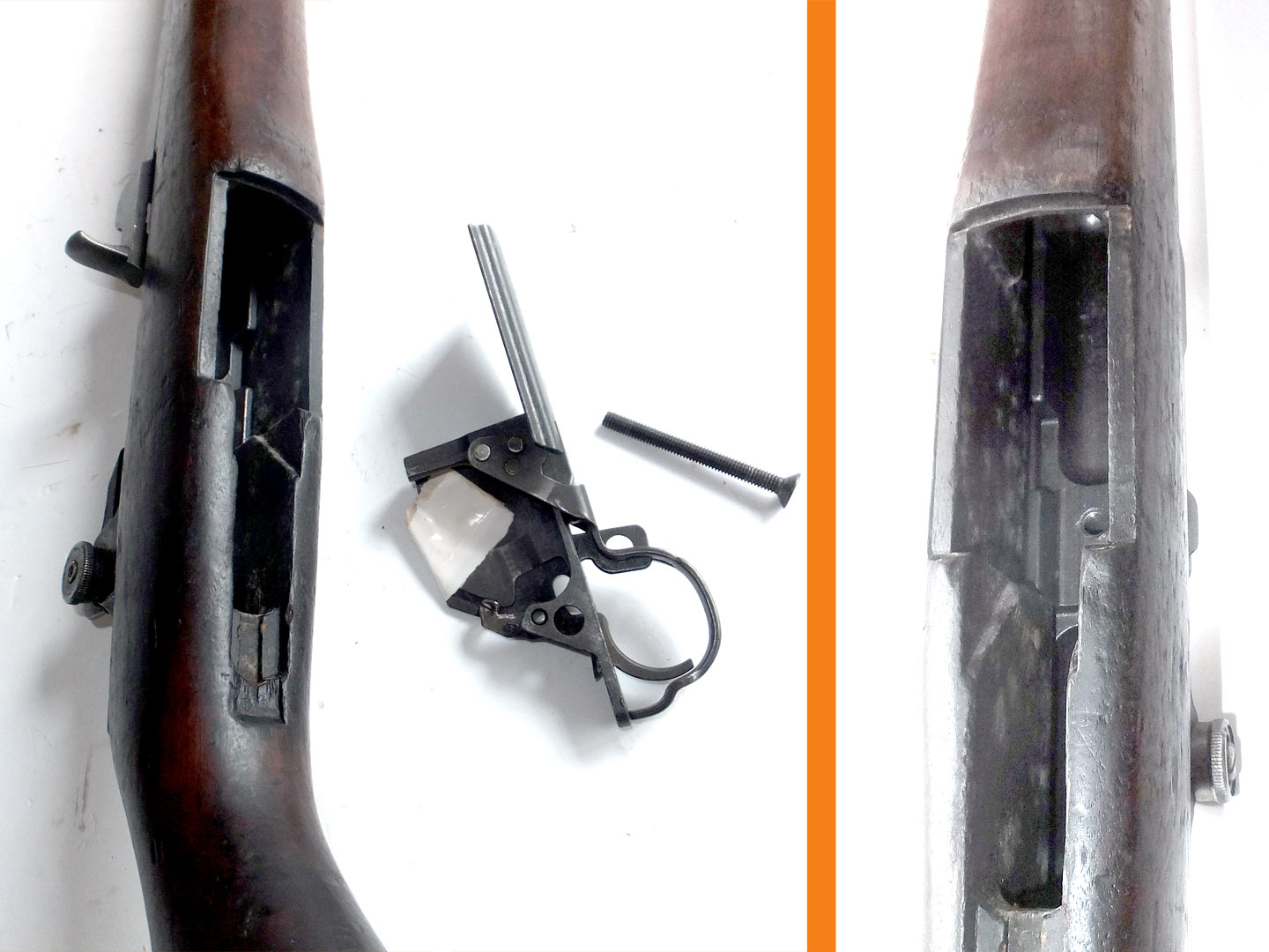 1996年7月号のGun誌広告です。実銃ストックを大量に仕入れたのでしょうか?モデルガンを実銃ストックに組み込んで販売しています。ただし、ガーランドだけは機関部は一体物で全く動くところがありません。 そのかわり、ガスチューブやトリガーハウジング、オペレーションロッドなどは、実物が使われていたようです。