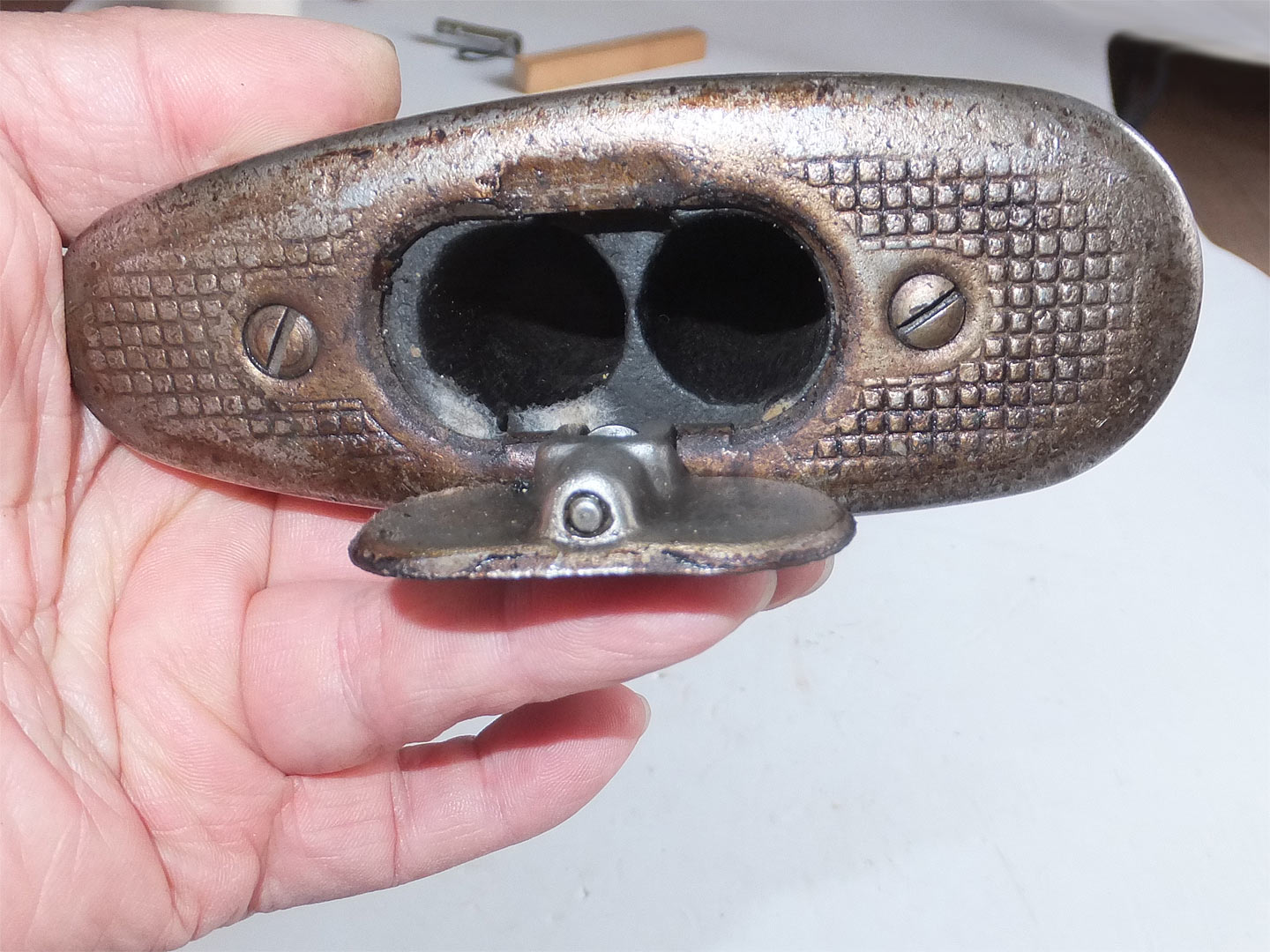 うん、まぁ思っていたような感じです。中身はまるで無い、まさにがらんどう(伽藍洞)。写真のセフティ周りの白い物は、ガムテープでセフティがオフ・ポジションになるように私が貼り付けたものです。 トリガーとセフティは、ブラブラ状態です。