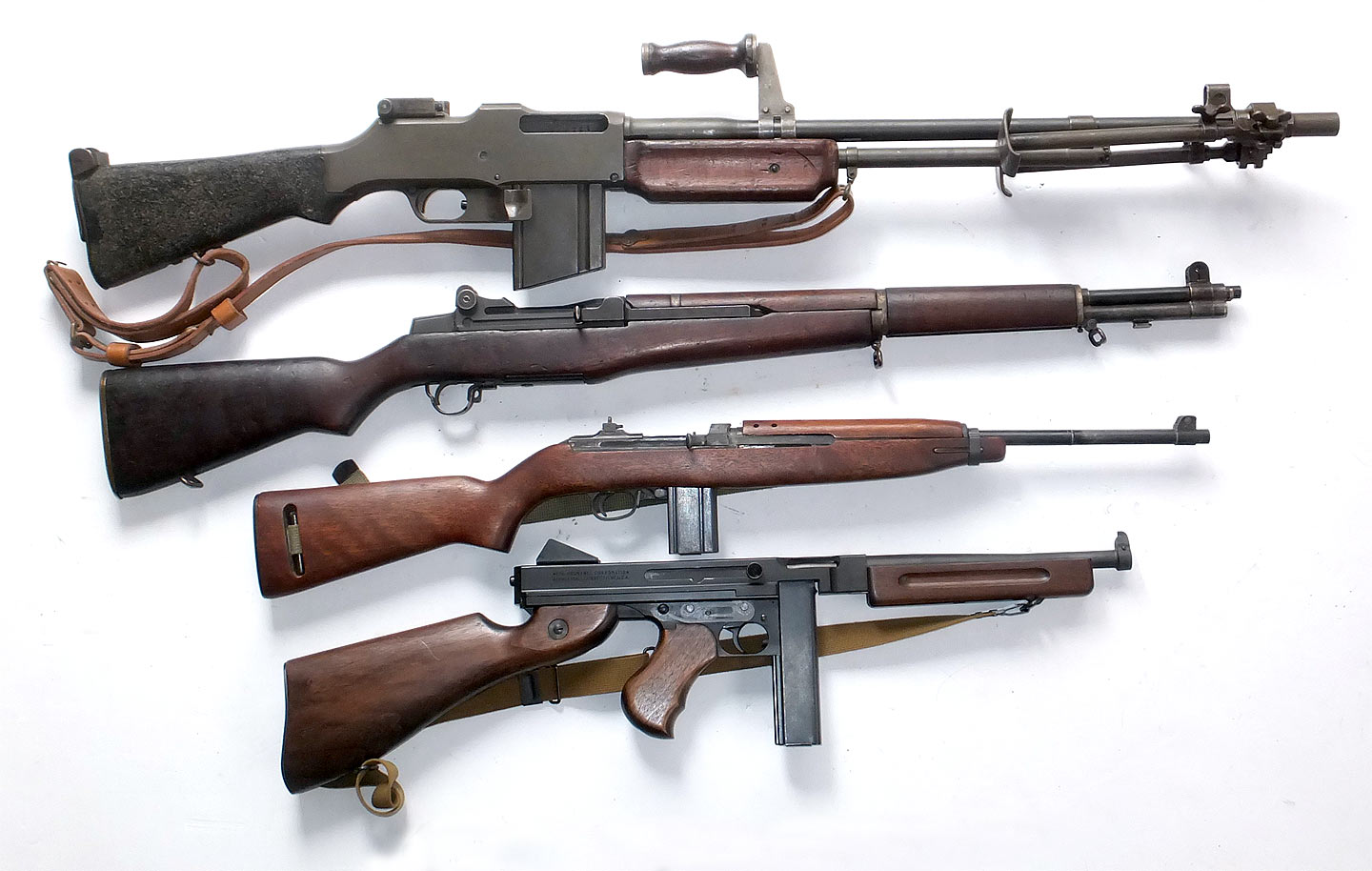 2次大戦セットです。上から無可動BAR 、中田ガランド、CMC M1 カービン、CAW トンプソン。久しぶりにBAR を引っ張り出してきましたが、やはりでっかく重いです。超迫力です。 こんなに重いのを一人で抱えて戦場を駆け抜けたんですから、カービー二等兵を尊敬しちゃいます。